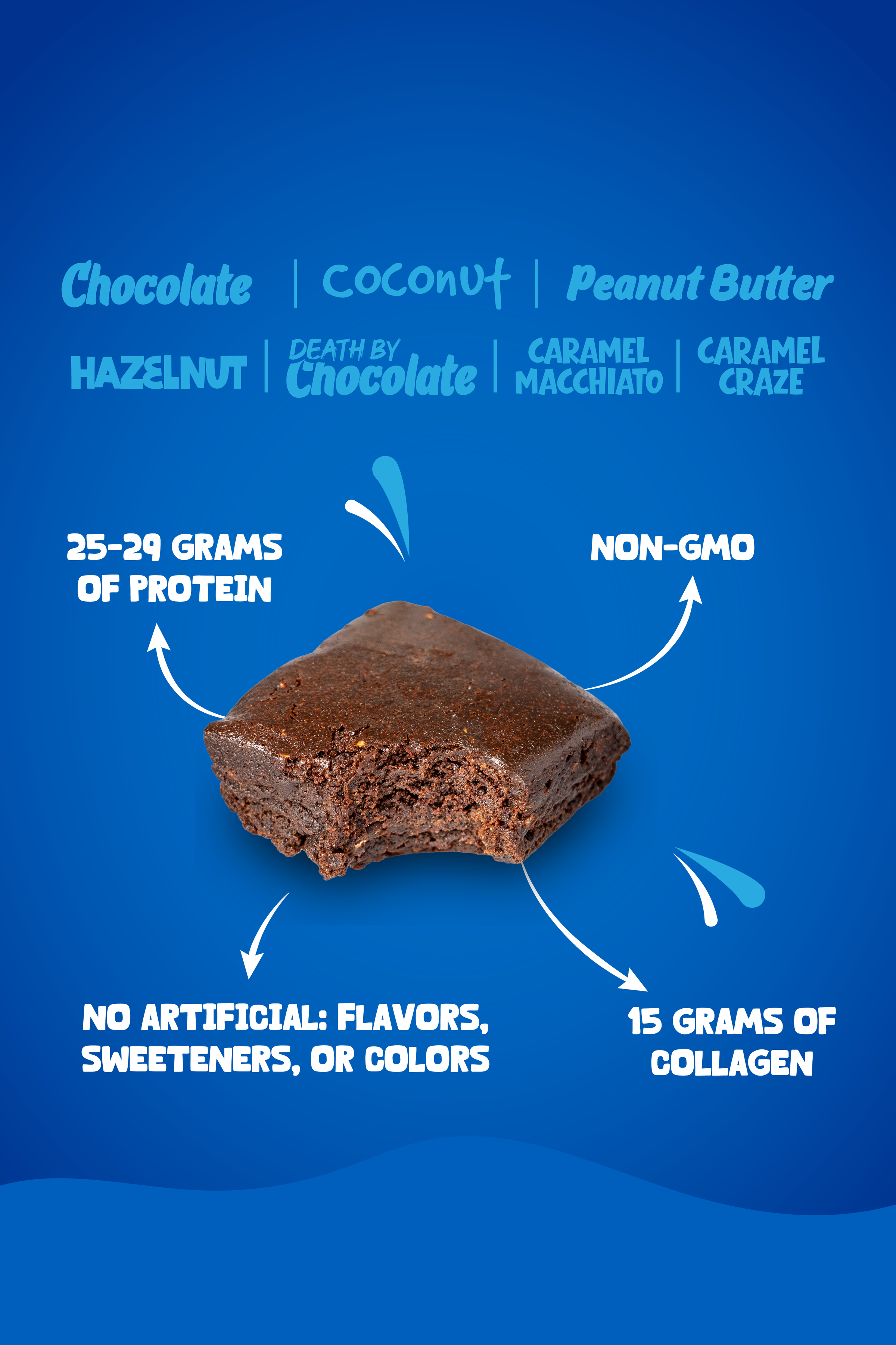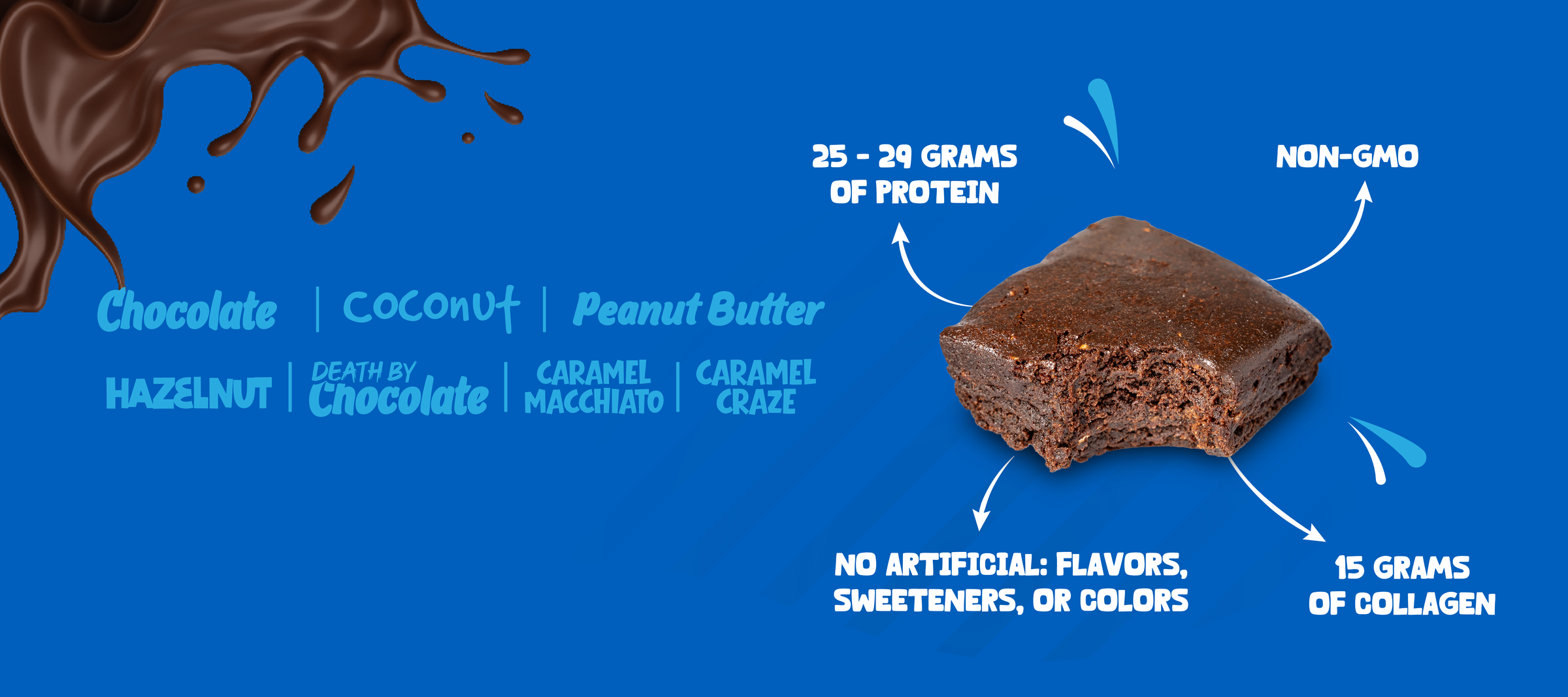 We've packed 25-29 grams of protein into a decadent 65 gram brownie. Portable protein has never been this delicious.